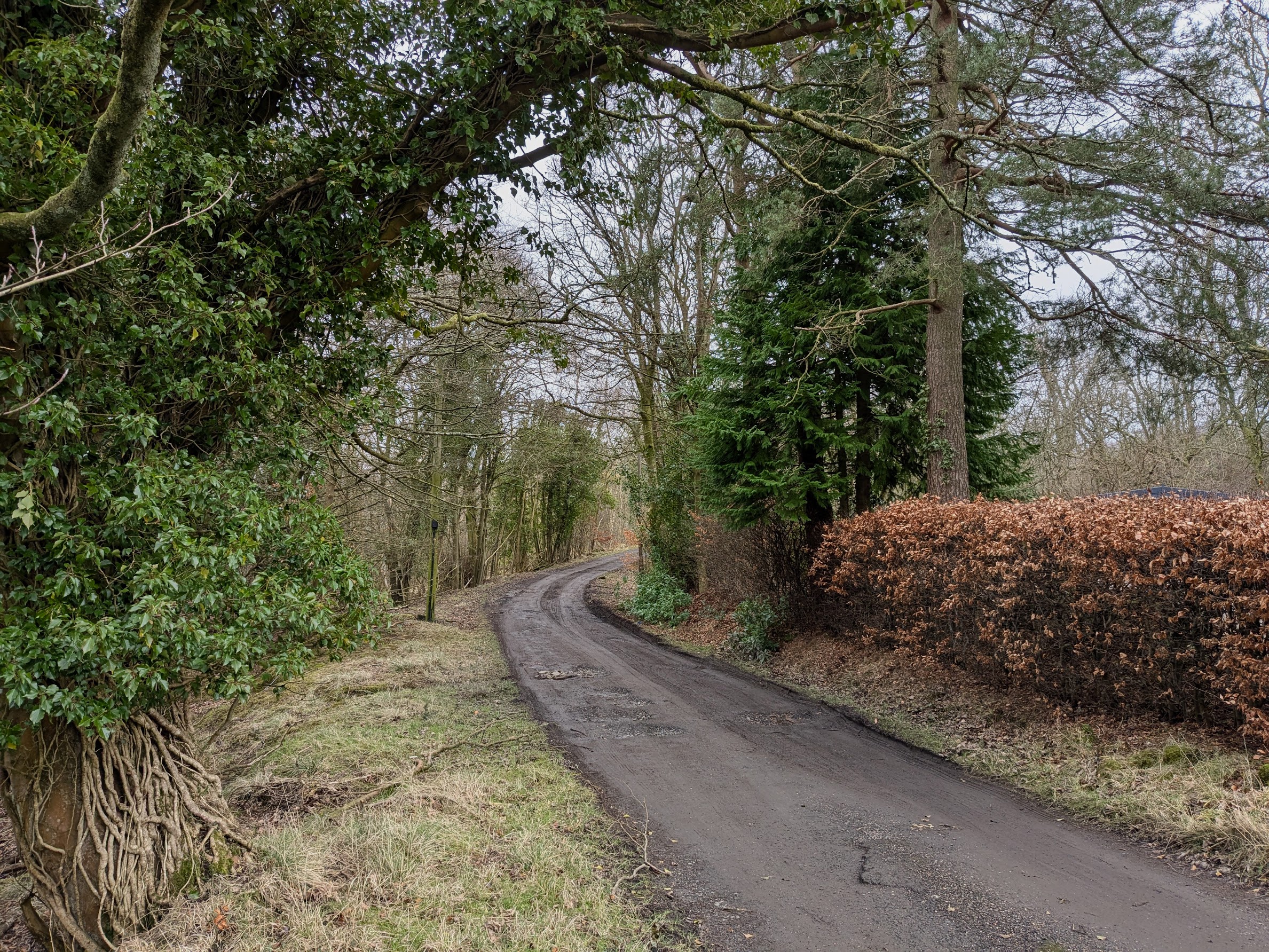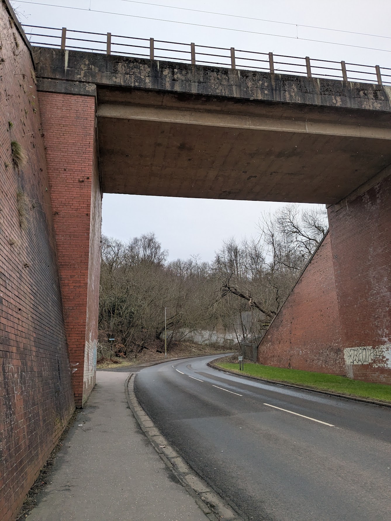 From Falkirk Wheel main entrance at Tamfourhill Road follow road to exit – at roundabout take 1st exit left onto Tamfourhill Road/B816, continue to junction (0.6mile). Turn right onto Glenfuir Road (0.1mile) **high rise flats now on your left,- continue up onto Greenbank Road (0.3mile) under the pink brick railway bridge (pictured below) and canal viaduct, continue uphill past end of Union Canal on left. Pass three cottages on the right side, at corner veer left onto track follow Camping Pod signs (pictured) up the track (pictured below left) past a green barn on left, straight ahead to Greenbank Farmhouse.