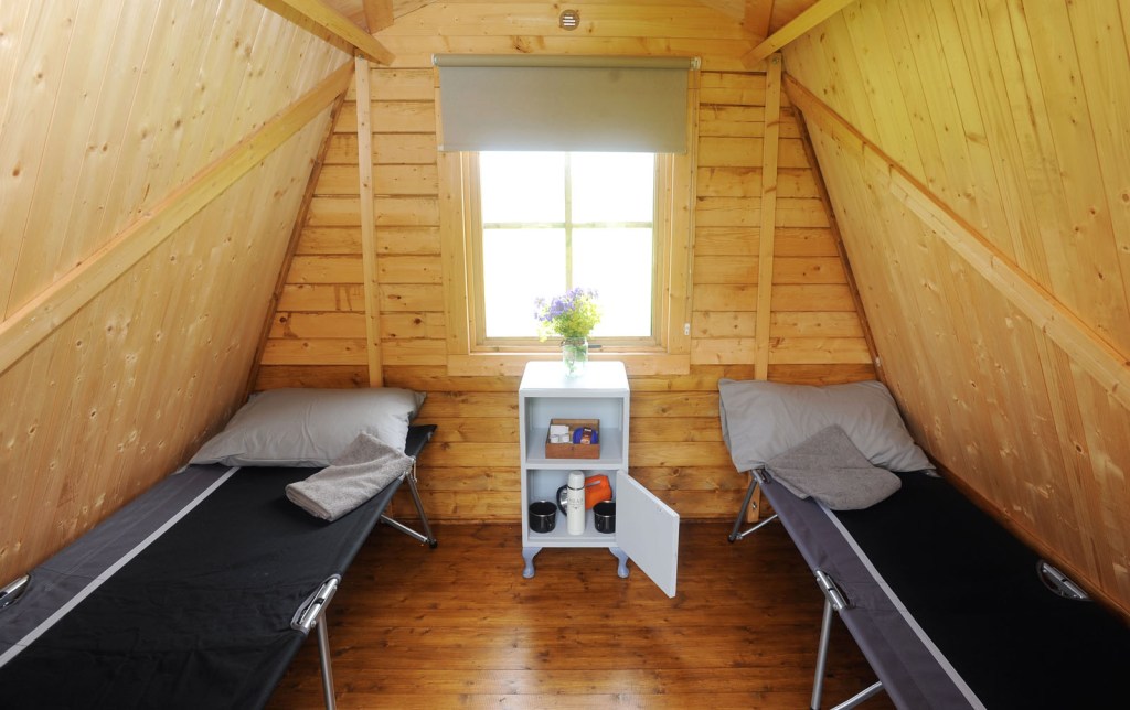 Sandra Morrison from Spoke ‘n’ Boot says: “Light will be provided by the stars and the moon . . . with a lantern to guide you! Just bring your sleeping bag, unroll it onto your camp bed, all ready to enjoy a good night’s sleep! Wake up to birds singing, hens clucking and deer grazing in the fields.